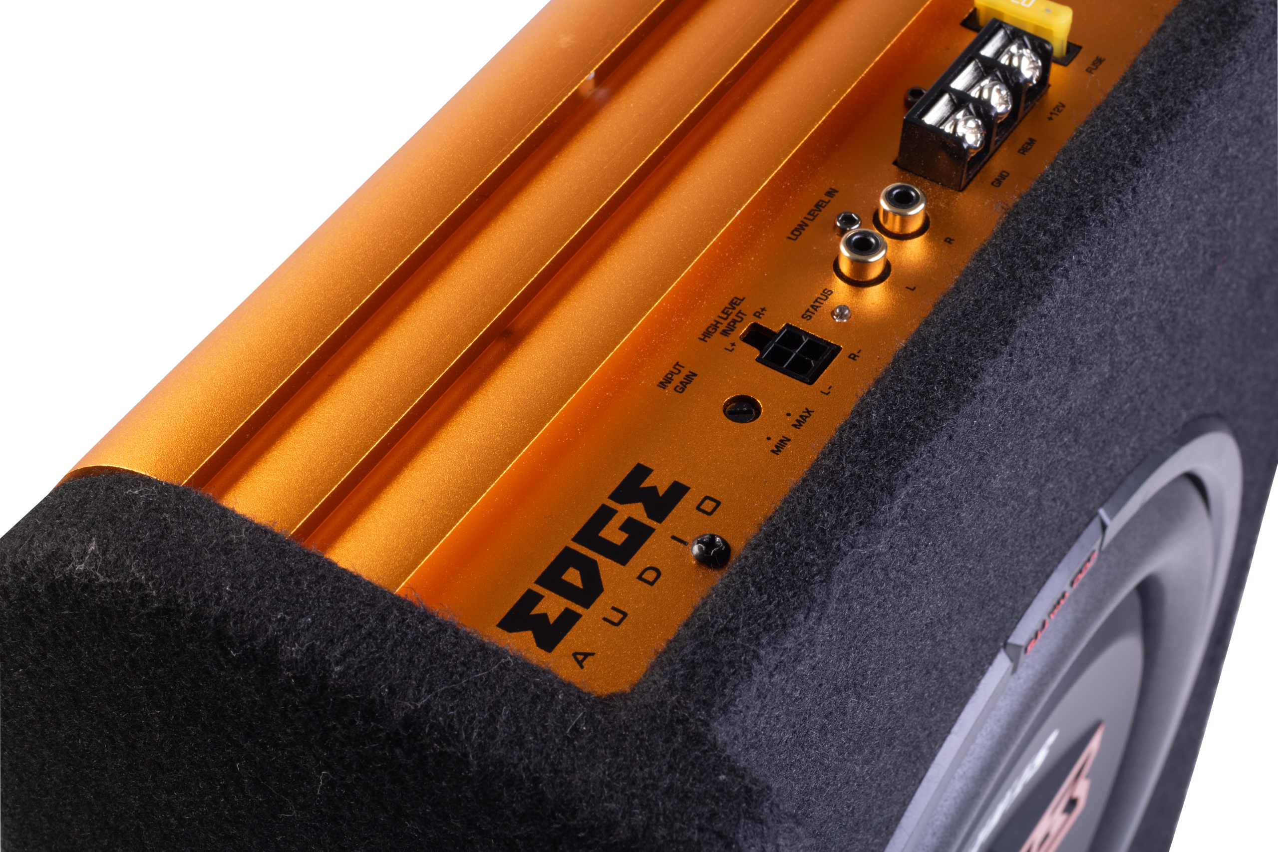 The MDF slot ported enclosure features a custom tooled amplifier heatsink that smooths the airflow to reduce turbulence and port noise.