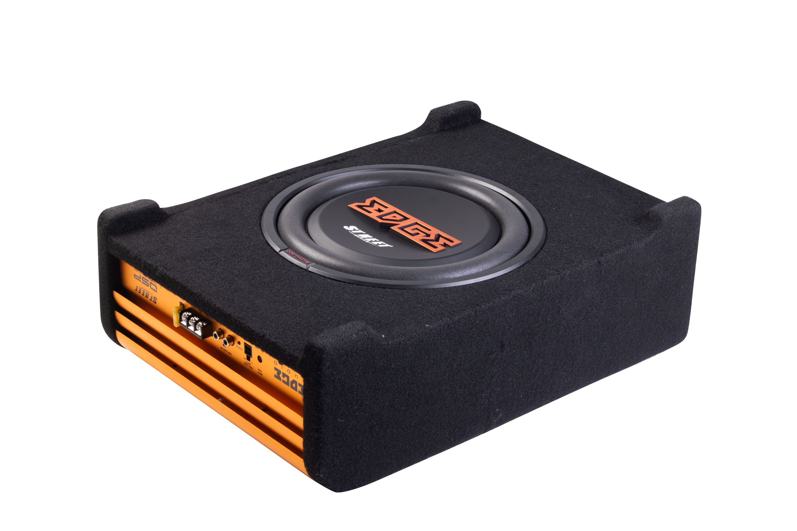 10" Slot Ported Enclosure, 300w RMS/900w Peak, 2ohm, High Level Input, 335 x 500 x 288mm, Active Class D Power Amplifier with DSP