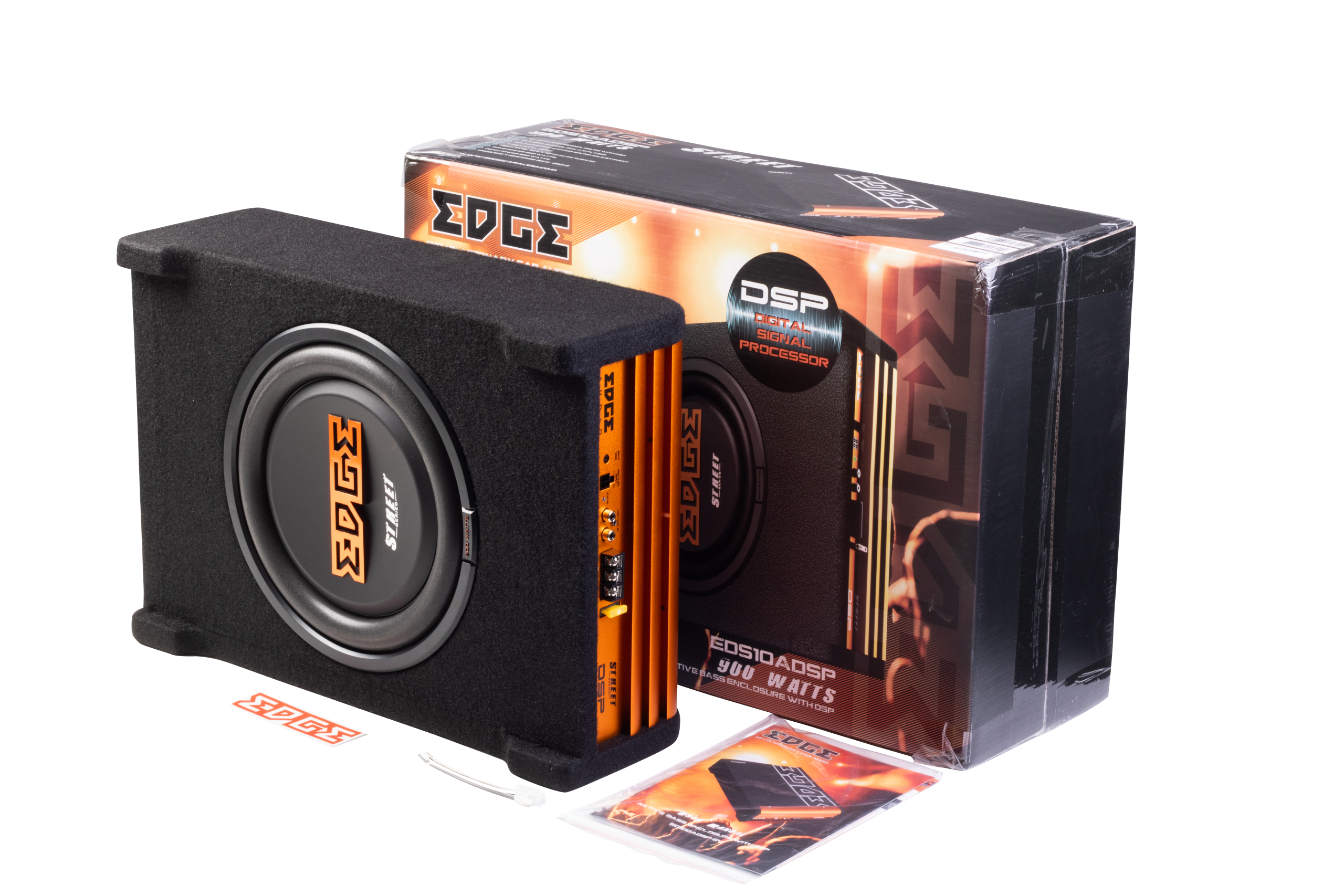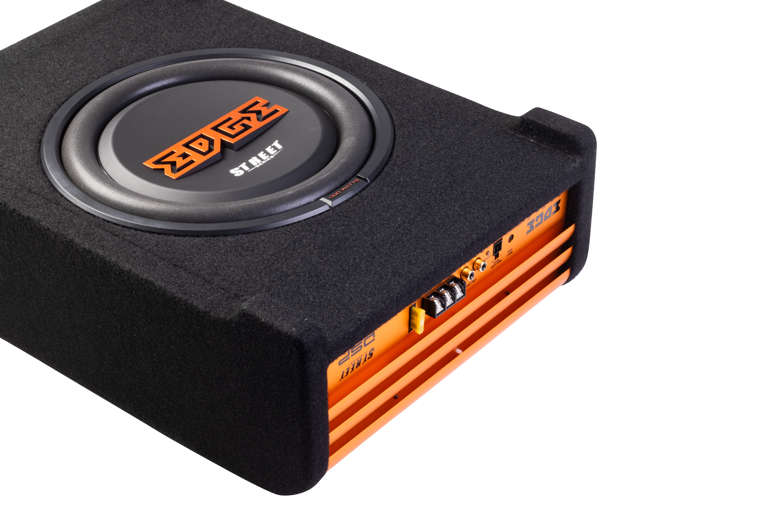 10″ Slot Ported Enclosure, 300w RMS/900w Peak, 2ohm, High Level Input, 335 x 500 x 288mm, Active Class D Power Amplifier with DSP