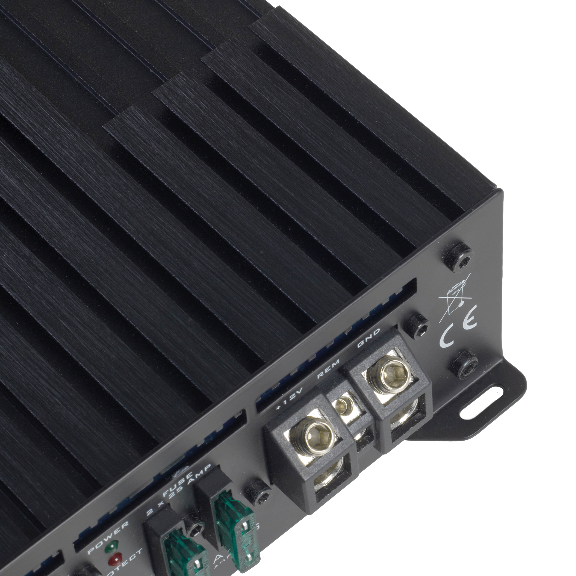 Class AB 4 Channel Amplifier, 4 x 100w RMS @ 4 Ohm, Edge Heatsink, Auto Sense, Internal Fan Cooling, 63x336x179mm