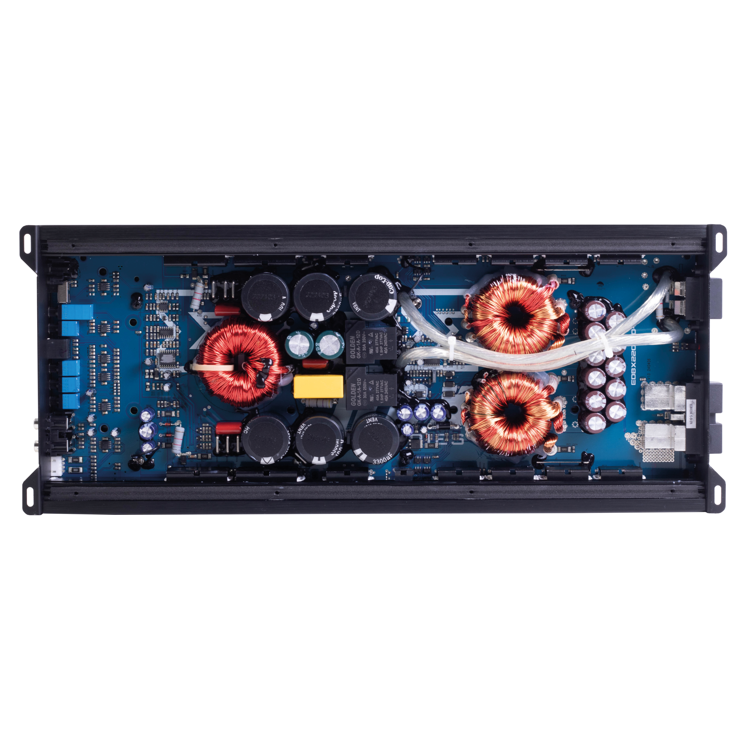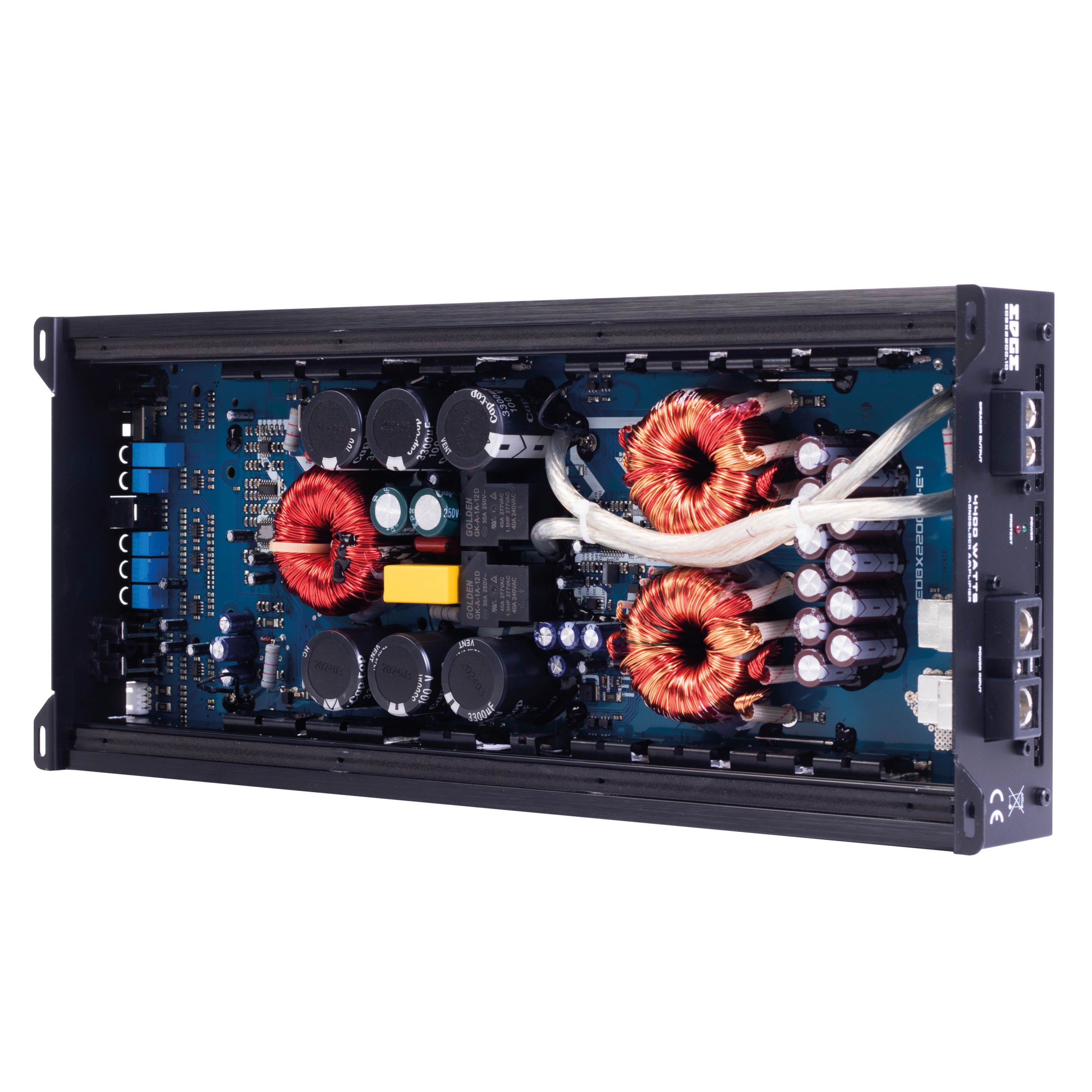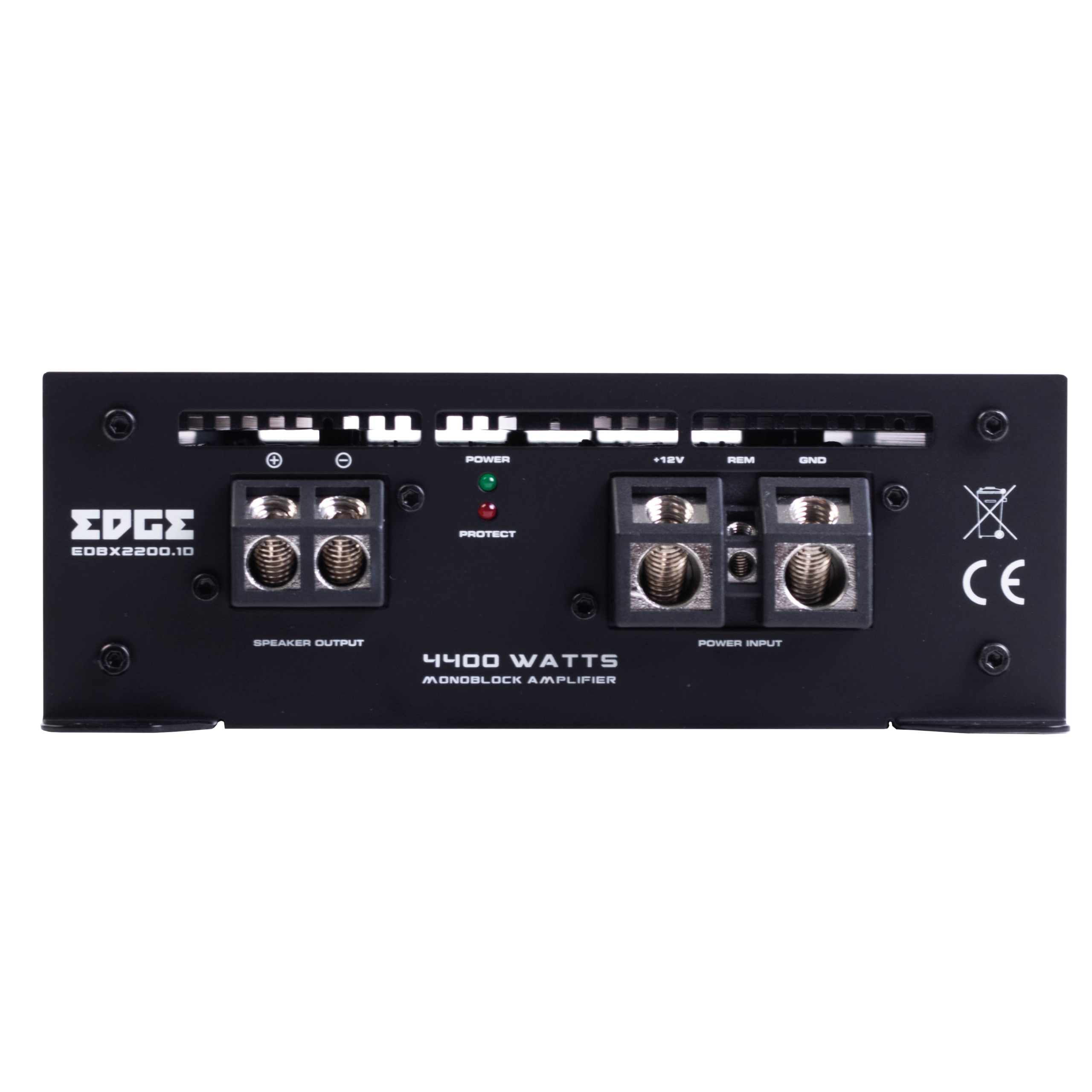 Class D Mono Amplifier, 2200w RMS @ 1 ohm, Edge Heatsink, Auto Sense, Internal Fan Cooling, 63x434x179mm